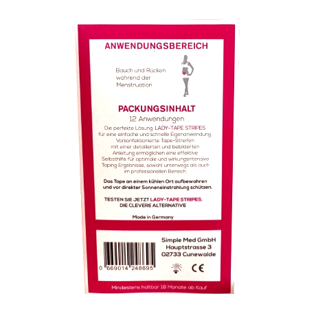 Da LadyTape frei von Chemie und sonstigen Arzneiwirkstoffen ist, gibt es keine Kontraindikation oder Nebenwirkungen.